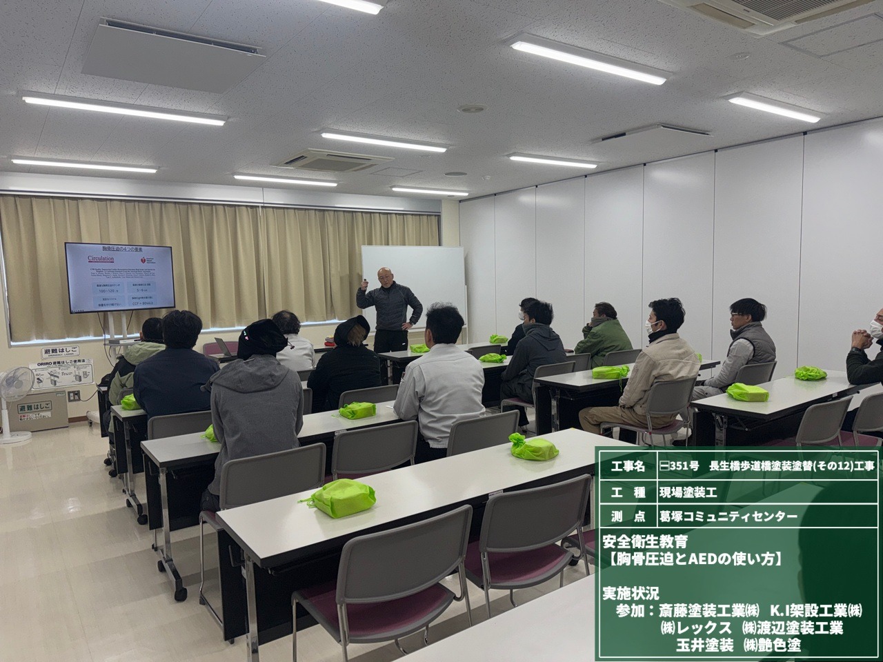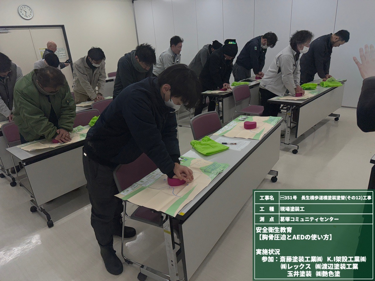 工事開始に伴い、「心肺蘇生法講習会」を行いました。 新潟PUSHプロジェクト様を講師に迎え、胸骨圧迫、AEDの使用方法を教えていただきました。 作業員ひとりひとりが、いざという時の対応を身につけて、万が一に備えた安全な現場環境づくりに努めます!